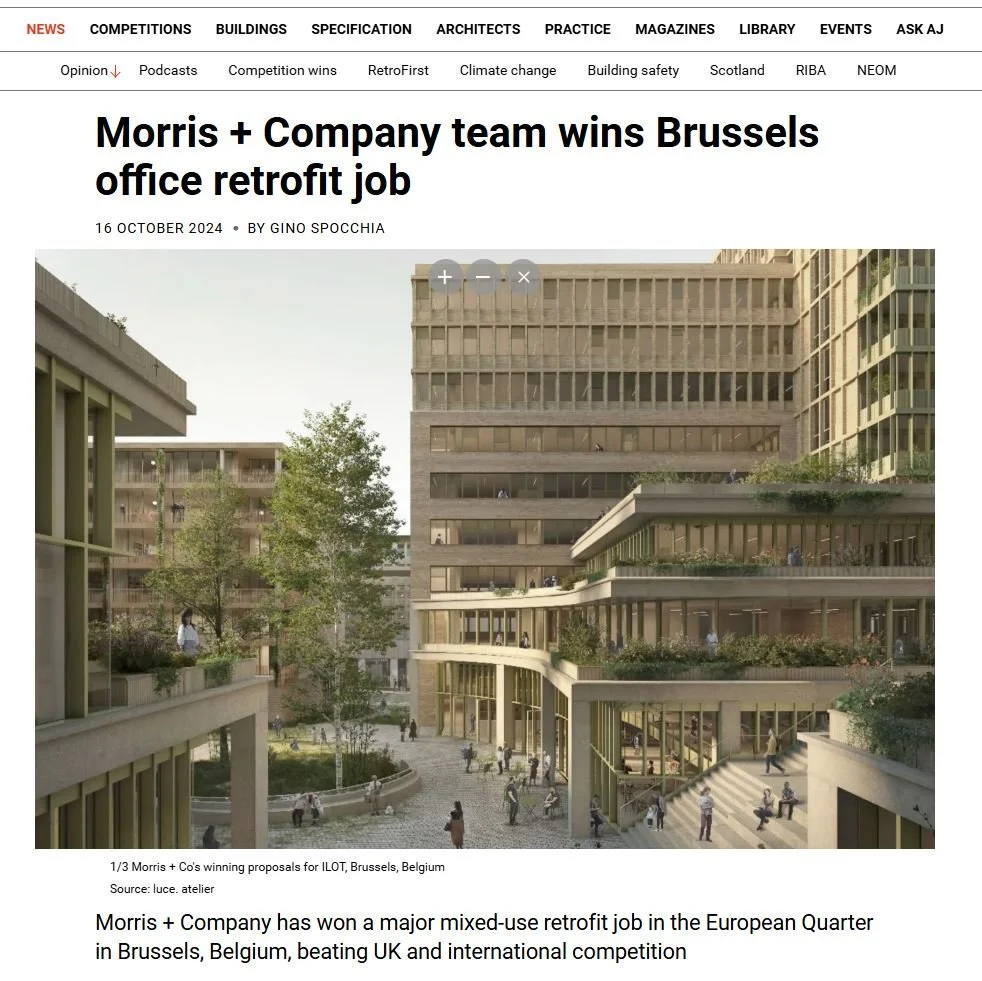 1st prize - "Morris + Company, a20, and VELD Secure Landmark Mixed-Use Retrofit Project in Brussels' European Quarter.